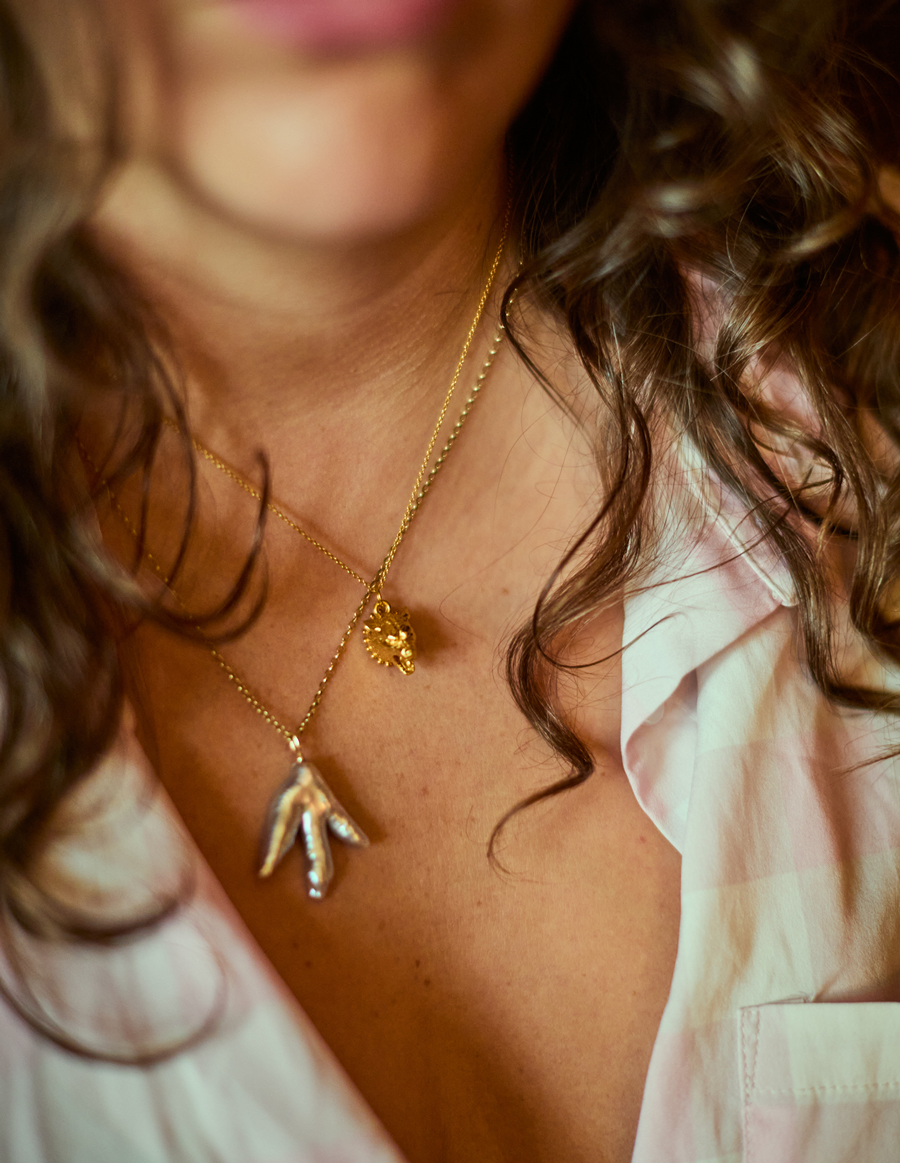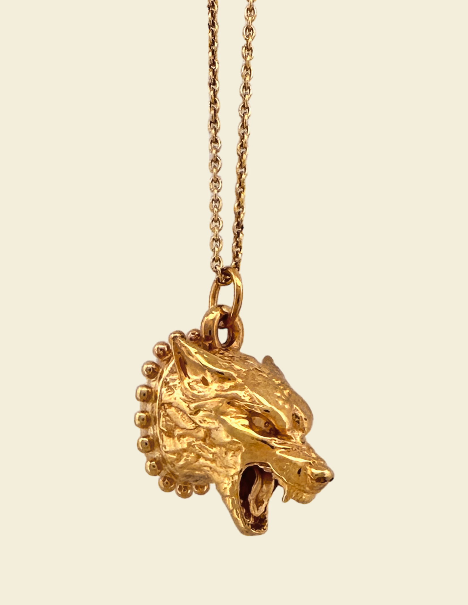 A tension between the wild and the civilised, between power and control, between rebellion and boundary. An expression of the strength and conflict that courses within us. A wolf, fangs bared and tongue curling, adorned in an ornamental collar.